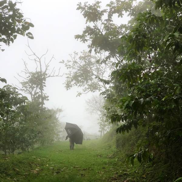 The farm sits at 1,700 meters, where cool temperatures and constant mist create ideal conditions for slow-maturing coffee cherries. The surrounding forest is home to hundreds of bird species, creating a rich soundscape that changes throughout the day.